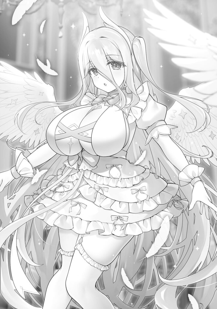 Kamino Kagura was there. She wasn’t wearing her school uniform; instead, she was clad in the same angelic raiment Luxuria had once worn, with white wings spread wide at her back.