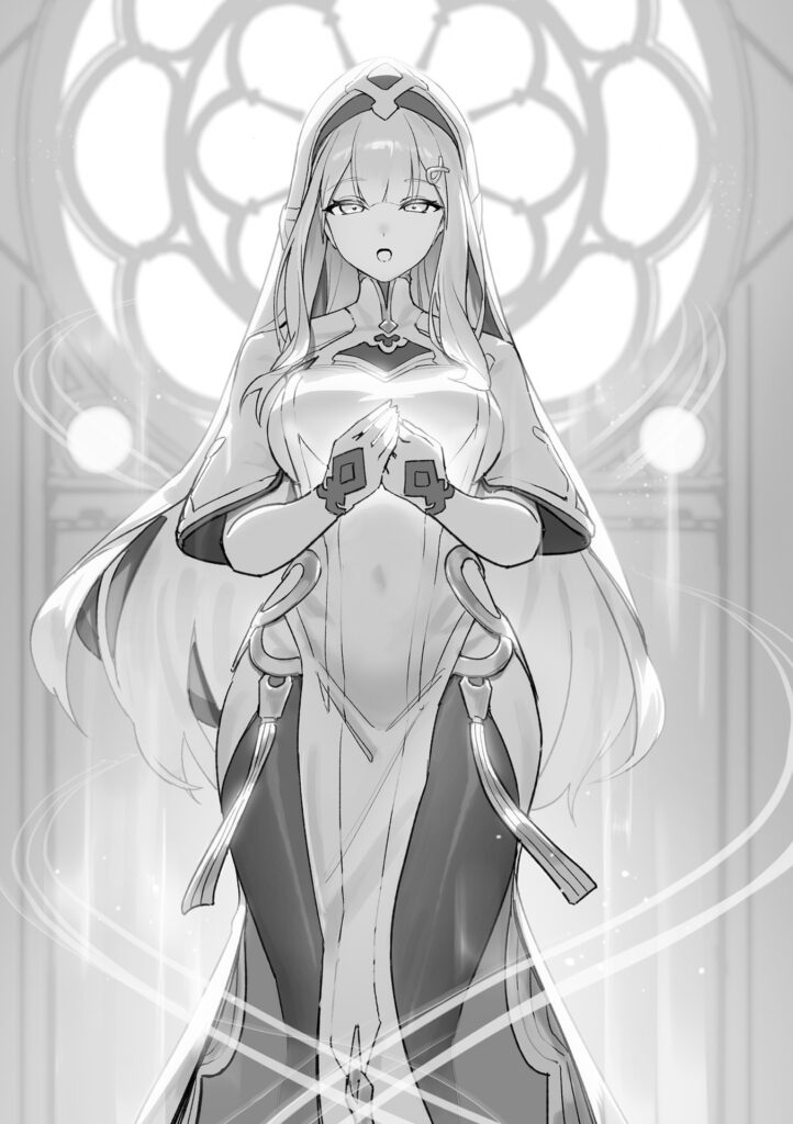 She had silvery-white hair that shimmered in the sunlight streaming from a high window, scattering motes of light with every step. Her gaze was quiet and intelligent, yet held a hint of melancholy. She was beautiful enough to have been captured in a masterpiece painting. This was the ‘Saint of the Academy,’ a girl who perfectly embodied the mystique of her title.