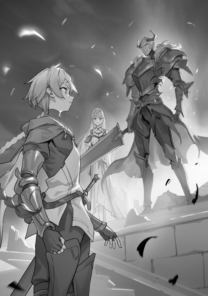 Saving the Princess meant abandoning the Capital to the Origin. That was the choice. The limit of what a single knight could do. But he wasn’t just a knight anymore. Thinking of the girls who were surely fighting bravely under the same night sky, Arl declared proudly,
